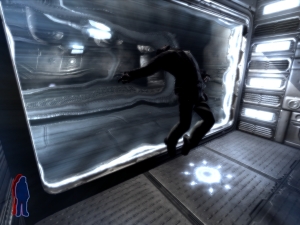 Der Einstieg erinnert an Half-Life – im Vergleich zu Valves Erstling ist die einführende Fahrt allerdings so rasant, dass ihr euch, genau wie Tommy, nur eins fragt: Was zur Hölle?! Denn nachdem ihr auf dem Raumschiff der Aliens angekommen seid, werdet ihr, an einer Metallplatte festgeschnallt, als einer von hunderten von Menschen durch das Innere transportiert. Jen ruft um Hilfe, panische Schreie hallen durch die Gänge. Aliens laufen an der Decke entlang und irgendwo platziert ein menschlich aussehender Typ eine Bombe. Die Wände sehen aus wie eine Mischung aus organischer Materie und Räumen aus Metall.