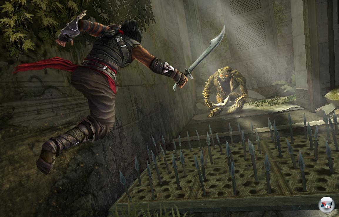 Habe ich etwas gegen akrobatische Kletterei? Nein! Gibt es keine Höhepunkte, die an alte Zeiten erinnern? Doch! Es ist sehr lobenswert, dass Ubisoft nach der Elikaphase endlich wieder zurück zum Nervenkitzel alter Tage will. Aber man schafft es nur in Ansätzen: Nur wenn es zeitkritische Situationen oder multiple Ausweichsituationen mit mehreren Fallen gibt, kommt es mal zu Herzklopfen und Anspruch für die Hand-Auge-Koordination. Es ist lobenswert, dass Ubisoft das Flair alter Tage auf PS3 und Xbox 360 wiederbeleben wollte, als man nach Wandläufen noch sterben konnte, dass man den Nervenkitzel wieder wecken wollte. Aber so richtig konsequent und vor allem gut ist man dabei nicht vorgegangen. Erstens kann man die Zeit zurückspulen, wenn man einen Sprung mal nicht schafft; zweitens hätte man eine Sprungphysik entwickeln müssen, die das Gewicht und den Schwung berücksichtigt. Obwohl man mit rotierenden Klingen, schwingenden Baumstämme, bröckelnden Plattformen alle Zutaten für unterhaltsames Springen und Erklimmen in den persischen Topf schmeißt, wird es immer nur lauwarm.