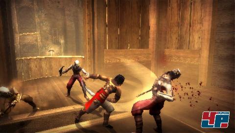 Gar nicht so einfach, denn zwischen dem Prinzen und seinem Ziel stehen nicht nur ganze Meuten verschiedener Sandmonster, sondern auch trickreiche Fallen, die es zu überwinden gilt. So bleibt euch nichts anderes übrig, als euch zu treibenden Rockklängen ein- oder beidhändig mit Schwertern, Äxten und Dolchen durch die Gegnerschar zu metzeln und Fallen wie Sägeblätter, weg brechende Böden oder andere heimtückische Vorrichtungen mit eurem reichhaltigen Repertoire an Bewegungen zu überwinden. Daneben profitiert der Prinz auch bei Schwungstangen und Balken von seiner unglaublichen Agilität und erreicht ungeahnte Höhen. Die Action ist wie gehabt hervorragend inszeniert, auch wenn während der hektischen Kämpfe manchmal die Übersicht verloren geht. Ein Problem ist die Dunkelheit: Aufgrund des düsteren Settings müsst ihr schon ganz genau auf das Display der PSP schauen, wenn ihr etwas erkennen wollt. Spielt ihr in einem zu hellen Raum oder fällt zu viel Licht auf den Bildschirm, fällt es wirklich schwer, manche Fallen zu entdecken.
