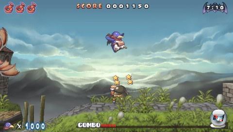 Grund zwei ist die Kombination aus Leveldesign und fieser Gegnerplatzierung: Ein Kontakt mit einem Feind schleudert Prinny ein kleines Stück weit zurück; viele der anspruchsvolleren Hüpfabschnitte sind zusätzlich mit Widersachern verseucht. Sprich: Als ob man nicht schon genug mit der Hüpferei zu tun hätte, wird man auch dauernd von unerwartet ins Bild springenden Gegnern in Abgründe geschubst – da rattern die Leben im Stakkato runter, ganz besonders angesichts der Tatsache, dass Feinde nachwachsen, sobald man aus dem Bild geht. Der fieses Teil des Spiels ist aber die Sprungkontrolle, die an Ultimate Ghosts’n Goblins <a class="DYNLINK" onmouseover="DynToolTipp_Show('Klicken für Gameinfos‚)“ onmouseout=“DynToolTipp_Hide(); “ href=“javascript:DynCont_Display(‚Gamefinder‘,’runmod.php?sid=%7BSID%7D&LAYOUT=dyncont_gf&spielid=8574′)“>