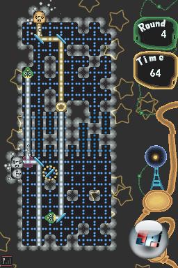 Ganz wie der Stern von Bethlehem, der den Weisen aus dem Morgenland den Weg wies, sorgt ihr in Prism dafür, dass das Licht am richtigen Ziel ankommt. Dazu tippt ihr mit eurem Stylus auf einen der Bulboiden und schiebt ihn auf dem Spielfeld umher. Bulboiden sind die zuvor beschriebenen, zum Leben erweckten Knuddel-Weihnachtsbäume, die leuchten wie eine Taschenlampe. Eure Aufgabe ist es, ihren gebündelten Lichtstrahl mit einer kleinen Auswahl an Spiegeln und Prismen zu den ovalen Glowbo-Wesen zu leiten. Natürlich wurde auch die obligatorische Geschichte um das Spielprinzip herum gebastelt: Ein Weltraum-Monster hat den armen Glüh-Viechern das Licht weggeschnappt und nun springen eben die hilfsbereiten galaktischen Weinachtsbäume als Lichtquelle ein.