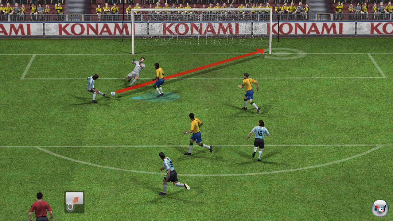 Eine weitere Neuerung in der Offensive ist die Give-and-go- sowie Doppelpass-Mechanik – und die sind beide trotz akribischer Trainingsmöglichkeiten gewöhnungsbedürftig. Fußball muss gerade in diesem wichtigen Bereich intuitiv und flüssig ablaufen, wenn es im Strafraum zum Ausspielen oder auf engem Raum zu öffnenden Kurzpässen kommen soll. Aber hier verlangt Konami zu viel des Guten an Knopfkombinationen, zumal man das Zug-Dribbeln zur Voraussetzung für den Doppelpass macht – sprich: Ich muss ersten einen Spieler mit gedrückter A-Taste per Remote in eine Richtung bewegen, dabei die Z-Taste gedrückt halten und in dem Moment, in dem ich einen Doppelpass einleiten will, die B-Taste drücken. Warum kann ich das nicht auch aus dem Stand oder ruhiger Bewegung heraus?