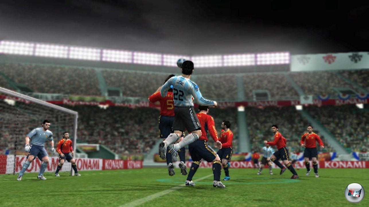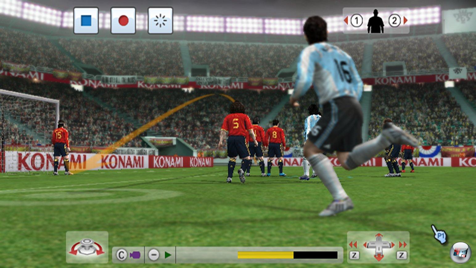 Auf dem Platz sorgt das zunächst für deutlich weniger Tempo, denn die Ball führenden Regisseure und Stürmer versacken öfter im Mittelfeld. Allerdings wird das Spiel dadurch seinem Simulationsanspruch etwas gerechter, denn nur wer die immer noch etwas knifflig einzuleitenden Doppelpässe im Kleinklein, weite Flanken für den Raumgewinn oder schnelle Zuspiele in die Spitze einleitet, kommt vor das Tor. Darunter leiden widerum die Dribblings, denn obwohl man vom Zidane-Dreher bis zur Matthews-Finte zaubern kann, fehlt den Profis im 1 gegen 1 die Effizienz und Eleganz – schade, dass man hier über die Bewegungssteuerung nicht individuellere Akzente setzen kann. Man nutzt später kaum noch Übersteiger oder Ähnliches, sondern höchstens das kontrollierte langsame Dribbeln über den Stick des Nunchuk – der Spielaufbau ist also taktisch, aber auch nicht gerade spektakulär hinsichtlich besonderer Einzelaktionen, zumal gerade in einem Spiel mit einem Freund für Finessen die Übersicht fehlt: Immerhin tummeln sich da zwei dicke Fadenkreuze und zig Pfeile auf dem Platz.