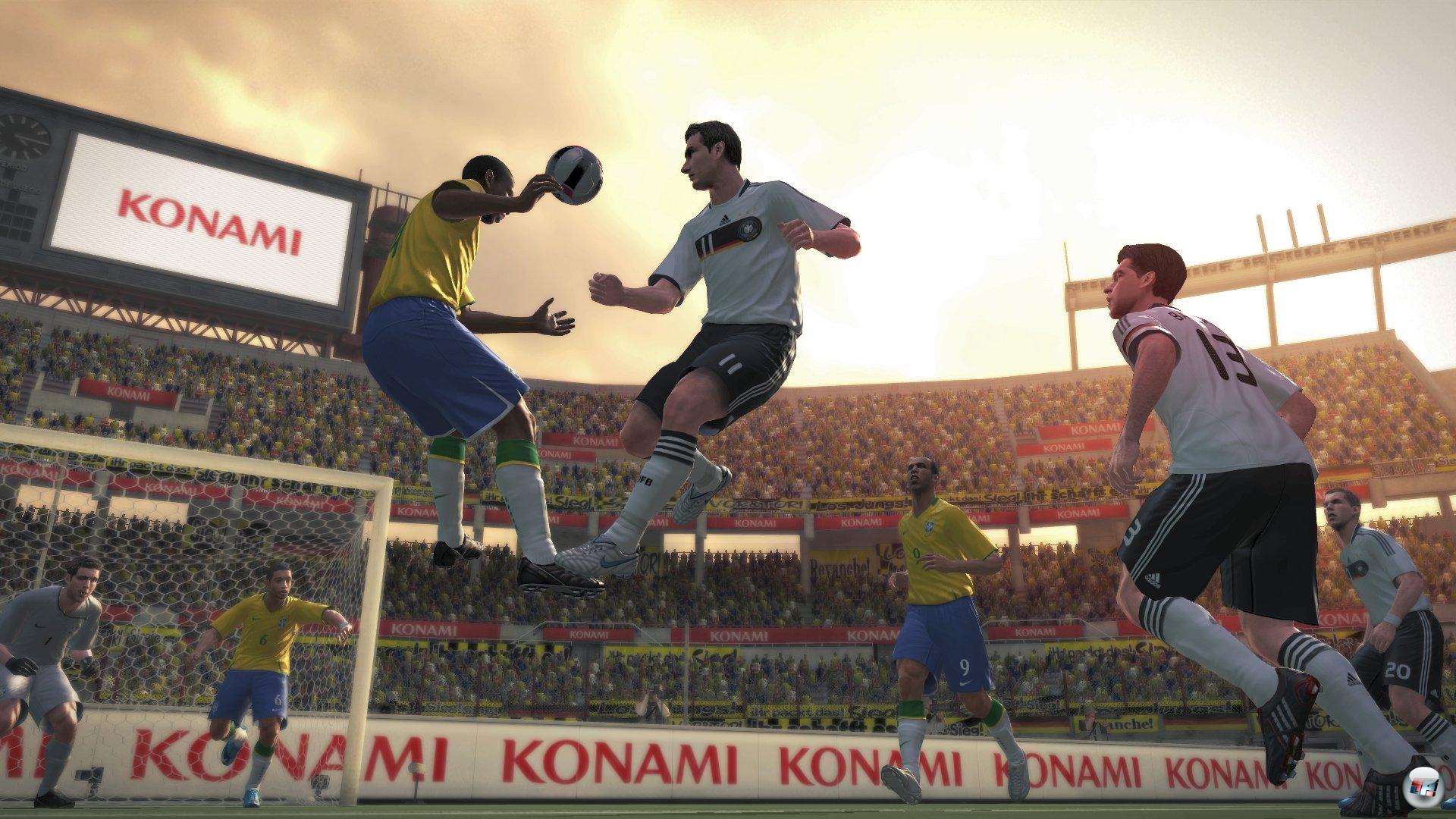 Hinzu kommen Situationen, in denen vier, fünf Spieler auf engem Raum um den Ball kämpfen: Hier beobachtet man nicht eine natürliche und lebendige Verdrängung des Leders, sondern teilweise ein Hin und Her, bei dem der Ball wie bei einem Flipper kantig mit einem Tok-tok-tok abprallt – weil die Soundeffekte dabei auch noch so mechanisch hallen, fühlt man sich bei diesen Rudelbildungen tatsächlich wie in der Spielhalle. Abpraller & Co gehören zum Fußball, gar keine Frage, aber nicht Drei- und Vierfachkollisionen, bei denen das Leder wie eine Metallkugel wegspringt. Man hat fast das Gefühl, als hätten die Japaner die Schrauben der Ballphysik überdreht. Und auch im und vor dem Kasten ist nicht alles nachvollziehbar: Zum einen gibt es immer noch zu viele Eigentore, weil Spieler einfach ins Tor laufen oder den Ball nicht selbständig auf den letzten Metern weghauen. Zum anderen haben selbst Weltklasseleute wie Casillas oder Buffon große Probleme mit halbhohen und eher schwach platzierten, also nur etwas von der Mitte entfernten Distanzschüssen, die sie schon mal durchlassen – die Rate an Aussetzern dieser Art ist groß und viele Tore entstehen, indem man sie quasi in den Kasten zwingt.