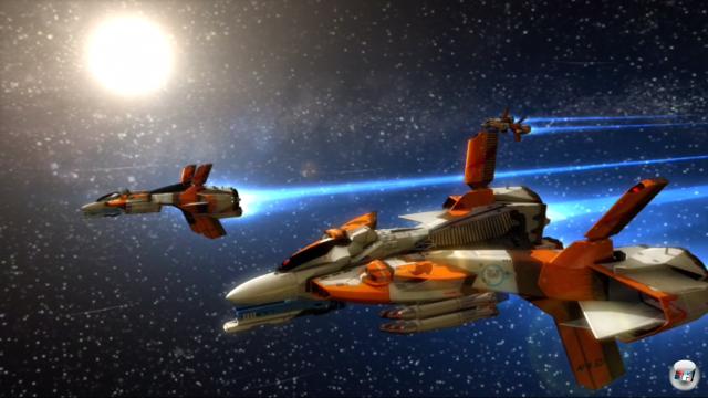 Der farbige Schweif, den jedes einzelne Schiff hinter sich herzieht, sorgt im Kampfgeschehen zusammen mit umher zischenden Raketen für ein visuelles Chaos.