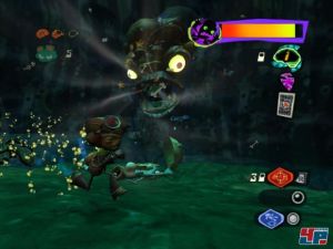Oder wie wäre es mit einem gut dosierten Schuss an Humor? Ein durchgeknallter General, der nichts anderes als Krieg in allen Formen im Kopf hat, über den streng analytischen und in geometrischen Mustern denkenden Freud-Nachfolger bis hin zur Levitations-Lehrerin, die im Herzen ein Disco-Star sein möchte, finden sich überall Punkte, an denen Grim Fandango-Meister Tim Schafer die Lachschrauben anzieht – und das meist erfolgreich. Immer wieder ertappe ich mich, wie sich ein kleines Schmunzeln auf mein Gesicht legt – um dann von einem lauten Lachen abgelöst zu werden. Zugegeben: manchmal ist der Witz etwas überzogen, doch da die Geschmäcker verschieden sind und Humor ist, wenn man trotzdem lacht, wird eigentlich jeder in Psychonauts immer wieder Elemente finden, die mal mehr, mal weniger die Lachmuskeln strapazieren. Mir persönlich hat es der Riesen-Anglerfisch angetan, der vom ernst zu nehmenden Bossgegner zum Freund avanciert und der einige ganz besondere Gedanken auf Lager hat…
