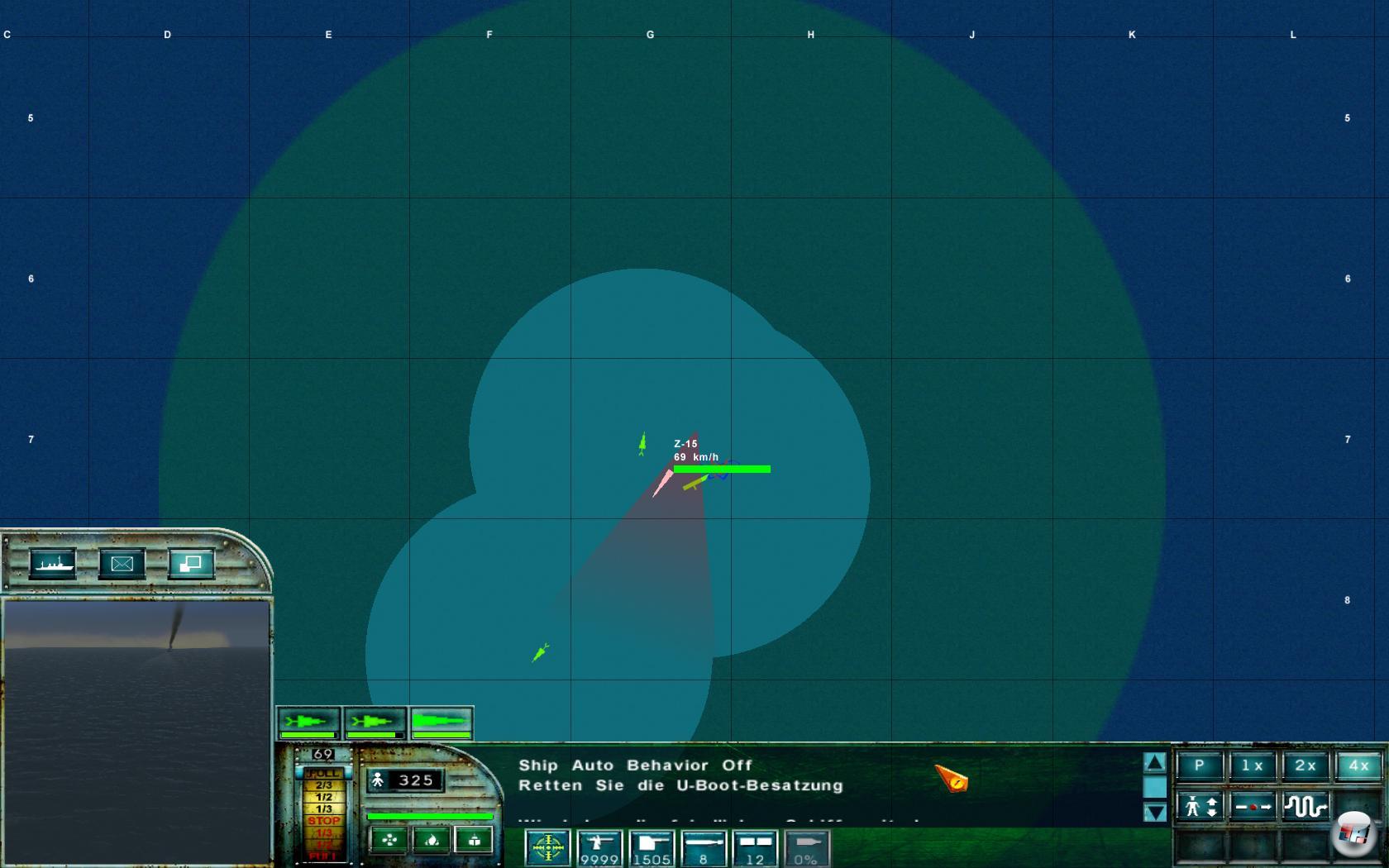 Hatte ich schon erwähnt, dass es extrem nervt in Ermangelung einer Speicherfunktion ständig den Beginn der Mission erneut spielen und immer wieder dieselben Funksprüche hören zu müssen? Krchhhh: »Eins hier: Ich hoffe wir entdecken sie, bevor sie uns entdecken« Krchhhh: »Zwei hier: Alles wird gut solange wir uns im Nebel verbergen« Krchhhh usw. usf. Gähn! Um es kurz zu machen: Irgendwann stelle ich fest, dass der Trick darin liegt, nicht via taktischer Karte am Konvoi entlangzufahren, sondern ausschließlich per manueller Steuerung mit der Tastatur (Pad oder Joystick werden leider nicht unterstützt). Bei dem Versuch den Nachzügler am Schluss zu torpedieren, wurde ich dann noch einmal versenkt (Frust!), denn die Tanker der Wehrmacht waren entweder extrem gut bewaffnet oder die britischen Torpedoboote waren seinerzeit komplett aus Holz. Schlussendlich konnte ich dann aber irgendwann diese erste Mission abschließen, die auch brav ausgewertet wurde (bis zu vier Sterne sind möglich) und mich endlich neuen Aufgaben zuwenden.