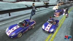 | Explosive Action und das coolste Feature seit Max Paynes Zeitlupengeballer: Der Held steigt einfach auf die Wagen der Verbrecher um. |