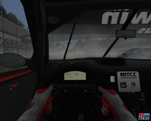 Was muss eine Hardcore-Simulation außer einer realistischen Fahrphysik noch bieten? Richtig, ein gutes Schadensmodell. In diesem Punkt haben die Jungs von SimBin vor allem in optischer Hinsicht leider etwas geschlampt: Zwar gibt es einige Beulen zu sehen und nach richtig bösen Rempeleien fliegen auch Teile wie die Motorhaube oder Stoßstangen durch die Luft, doch vermisst man einige Details. Kratzer im Lack gibt es keine, auch die Scheiben bleiben heil und wenn der Motor in Flammen hochgeht oder die Reifen qualmen, sieht der grünliche Rauch alles andere als realistisch aus. Fahrt ihr euch zudem in der Außenansicht einen Spiegel ab und schaltet danach wieder in die insgesamt gelungene Cockpit-Darstellung, ist der verlorene Spiegel plötzlich wieder vorhanden – und das ohne irgendwelche Beeinträchtigungen, wie es sie z.B. in PGR 3 auf der Xbox 360 zu sehen gab. Auch erscheint das Schadensmodell in vielerlei Hinsicht etwas zu gutmütig zu sein: Wenn mich meine Crew informiert, dass ich meinen Verteiler verloren habe, ich aber trotzdem ohne großartige Beeinträchtigungen weiterfahren kann, gibt mir das einige Rätsel auf. Trotzdem ist das Schadensmodell besser als das, was einige andere Genre-Vertreter bieten, doch hätte man hier viel mehr machen können. Doch wahrscheinlich galt es hier abzuwägen, denn immerhin befinden sich oft über zwanzig Fahrzeuge gleichzeitig auf der Strecke. Die KI agiert meist kämpferisch und kann auch mit dem Begriff „Kampflinie“ etwas anfangen, so dass es einige interessante Duelle zu sehen gibt. Allerdings steht ihre Leistung in den Qualifying-Sessions zu keinem Verhältnis zu den Rundenzeiten, die sie im anschließenden Rennen in den Asphalt brennen. Will heißen: Im Qualifying protzen die KI-Fahrer mit flotten Zeiten, doch im Rennen scheinen sie mit leicht angezogener Handbremse zu fahren. Landet ihr z.B. nur auf dem letzten Startplatz reicht in der Regel eine Runde aus, um am Fahrerpulk vorbei wieder in die Top 5 vorzufahren. Außerdem konnten wir ab und an KI-Aussetzer beobachten, bei denen Fahrer bei der Boxenausfahrt ohne Grund in das dort parkende Safety-Car gekracht sind. Apropos Box: Die Besuche bei euren Mechanikern für eventuelle Reifenwechsel, Betankungen oder Reparaturarbeiten hätten auch ansprechender ausfallen können. Anstatt den Stopp mit einer animierten Boxencrew spannend zu inszenieren, bleibt die Kamera in der Cockpitperspektive und zählt lediglich die Zeit hoch – ganz großes TV-Sportprogramm!