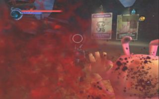 Trotz der knuffigen Charaktere sind die Kämpfe übrigens ausgesprochen brutal inszeniert, weshalb das rabenschwarze Teletubbie-Schlachten von der USK wohl auch keine Jugendfreigabe erhalten hat. Dabei wirken die gegen den Bildschirm klatschenden Kewlett-Leichen und in wahren Blutfontänen herum wirbelnden Plüscheingeweide, die zur Energiegewinnung aufgeschlürft werden können, eher comicartig skurril als jugendgefährdend – aber das muss wohl jeder für sich selbst entscheiden. Die köstlichen Einzeiler, welche die Kewletts im Todeskampf noch über ihre Lippen hauchen oder die Dialoge, die ihr bei lautlosem Anpirschen manchmal mithören könnt, sind zum Teil jedenfalls echte Brüller – Stichwort: tödliche Fußverletzung. Schade nur, dass THQ bei der Lokalisierung etwas nachlässig war und trotz multilingualer Kodierung manche Kewletts deutsch und andere englisch sprechen…