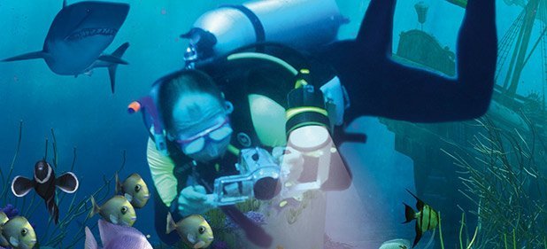 „faszinierenden Mischung“ aus „Tauch-Simulation und First-Person-Adventure“ ist da die Rede. Mal sehen, ob man der drei Jahre älteren Referenz „Aquanauts Holiday“ (Test: 82%) das Wasser reichen kann. Zunächst fällt positiv auf, dass es hier nicht darum geht Fische zu erlegen (ein Tabu für jeden leidenschaftlichen Taucher), sondern sie zu fotografieren. Im eher etwas sonderbaren „Depth Hunter“ (Test: 40%) ging es ja vornehmlich darum. Der gewaltfreie Ansatz ist mir schon mal sympathisch. Überhaupt scheinen sich die Entwickler stark an „Endless Ocean 2“ für die Wii (Test: 77%) orientiert zu haben, doch der Reihe nach…