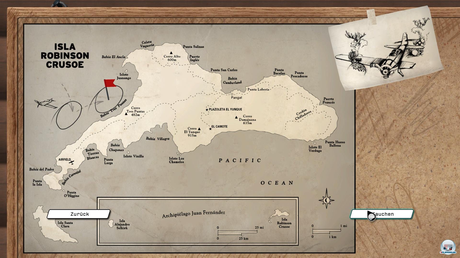 Als junger Nachwuchsarchäologe Scott soll ich einer Kollegin, die wohl keinen Tauchschein hat, bei der Erforschung der Unterwasserwelt der Robinson-Crusoe-Inseln weiterhelfen. Die gibt es übrigens wirklich und die wahre Geschichte um den 1704 dort