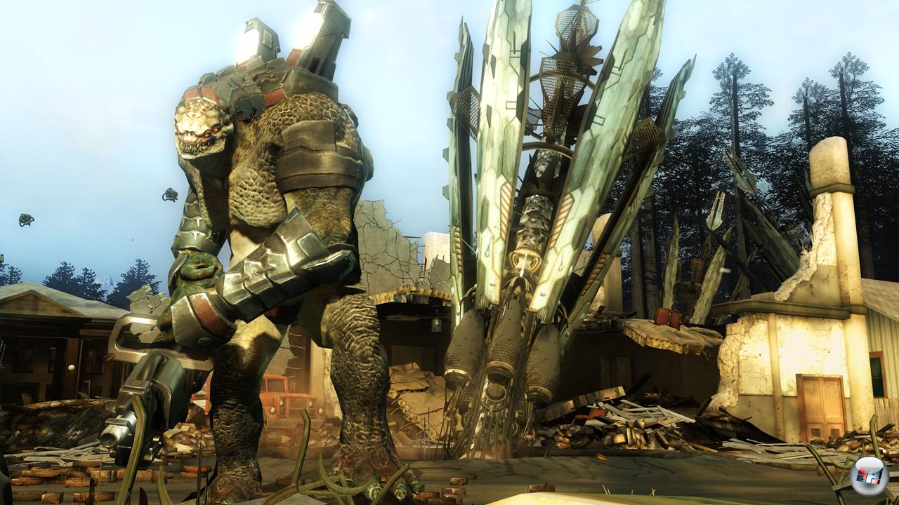 Die Entscheidung, euch gleich zu Beginn in den Kampf gegen einen gewaltigen Robot-Koloss zu schicken und damit das Spiel mit einem nicht nur visuell beeindruckenden Knall zu eröffnen, ist vielleicht nicht neu, aber sie funktioniert hier wunderbar und erinnert in ihrer Wucht rudimentär an Shadow of the Colossus – auch wenn Nathan hier nicht das Ungetüm stürmen kann. Auch die durch andere Genre-Vertreter inspirierten Änderungen, die in spieltechnischer Hinsicht im Vergleich zu Teil 1 eingebaut wurden, stehen Resistance 2 gut zu Gesicht. Mit der Reduzierung auf zwei gleichzeitig mitführbare Waffensysteme (jeweils mit zwei Feuermodi) kommt zudem ein Hauch Taktik während der Action auf. Da manche der Gewehre und Pistolen effektiver gegen bestimmte Gegnertypen sind als andere, sollte immer mit Bedacht gewählt und im Zweifelsfall die Umgebung in Augenschein genommen werden.