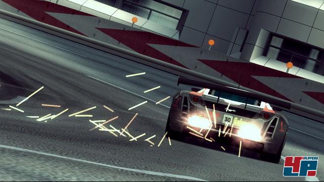 Welterforschung schnell Langeweile aufkommen. Ihr rast u.a. durch eine idyllische Parklandschaft, beobachtet die blinkenden Neonleuchten in der nächtlichen Rave-City oder liefert euch am Flughafen zwischen den Maschinen auf dem Rollfeld spannende Positionskämpfe. Leider fallen die meisten Szenarien trist aus und sind weit entfernt vom knallig bunten Karibik-Flair, wie man es noch aus RR Revolution kennt. Tatsächlich finden viele Rennen in der Abenddämmerung oder sogar bei Nacht statt, so dass euch die Funken vorausfahrender Wagen beim Aufsetzen besonders markant entgegen springen. Aber das war’s auch schon mit herausragenden Effekten, denn insgesamt ist Ridge Racer 6 grafisch nur Durchschnitt und nicht gerade ein Aushängeschild für die nächste Konsolengeneration. Mal abgesehen von der hohen Auflösung an einem HD-Display wäre der Titel auch ohne weiteres auf der ersten Xbox realisierbar gewesen. Landschaftstexturen und Fahrzeuge sehen kaum besser aus als bei PGR 2 und vor allem die Nachtrennen sind einfach nur öde inszeniert. Wo sind die gleißenden Lichteffekte an Straßenlaternen oder Häuserfassaden? Wo sind die Zuschauer, die euch während der Rennen fieberhaft anfeuern? Die Szenarien wirken allesamt äußerst steril und leblos – bis auf den ein oder anderen Hubschrauber oder ein Flugzeug. Kleine Lastwagen und Fahrzeuge, die im Hintergrund über Brücken tuckern, fallen dagegen praktisch gar nicht auf und gesellen sich zu den Schafen, die genau wie die Menschen auf den Zuschauertribünen mit mickrigen Animationsphasen wie Pappaufsteller am Streckenrand verweilen.Geht’s noch schneller?