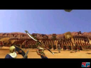 Die Bedienung eurer Heldin ist mehr als simpel, denn das Schlagen geht betont einfach von der Hand. Fast ist es zu einfach, wie ihr die Kämpfer mit dem Schwert ummäht. Nur gelegentlich bleibt ihr an etwas hängen. Euren Recken könnt ihr befehlen, euch ins Getümmel zu folgen. Alexander ist eher der Nahkämpfer und Kleopatra sollte lieber den Bogen einsetzen, der nicht von Pappe ist. Er ist eine mächtige Waffe, mit der ihr sogar gepanzerte Reiter und Legionäre mit einem Schuss töten könnt. Das Zielen und Schießen funktioniert simpel und ihr könnt entfernte Ziele heranzoomen. Ihr solltet also den Nahkämpfern ausweichen und sie aus der Ferne beharken. Mit einem Mehrfachschuss könnt ihr sogar Schiffe beschießen, die Feuerkugeln auf das Heiligtum des Osiris feuern.