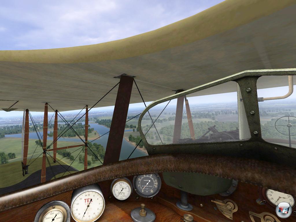 Per Autopilot und optional aktivierbarer Zeitbeschleunigung (max. achtfache Beschleunigung) wäre man natürlich schneller am Einsatzort, aber ich wollte es ja so real wie möglich. Man sollte es übrigens tunlichst unterlassen ohne Autopilot den Zeitablauf auch nur zu verdoppeln. Denn ehe man „drohender Strömungsabriss“ ausgesprochen hat, findet man sich auf dem Boden der Tatsachen in den Trümmern der eigenen Maschine wieder. Wer möchte, kann übrigens vor Missionsbeginn die Nähe zum Zielort so einstellen, dass man in der Luft direkt vor dem Feind beginnt, aber wir wollen ja das reale Erlebnis und so wird geduldig weitergeflogen bis nach ca. zehn Minuten endlich am Horizont die Silhouette eines Fesselballons auftaucht. Jetzt heißt es Nerven bewahren und die Maschine noch weiter steigen lassen, denn was habe ich in der letzten Trainingseinheit gelernt? Getreu der 1. Regel der „Dicta Boelcke“ (Die acht Grundregeln der Jagdfliegerei): „Sichere Dir die Vorteile des Luftkampfes (Geschwindigkeit, Höhe, zahlenmäßige Überlegenheit, Position), bevor Du angreifst. Greife immer aus der Sonne an.“ Oh Mist…die Sonne liegt auf meinem Anflug aber nicht hinter, sondern seitlich von mir …ist das schlimm? Haben die damals aus den Ballons heraus geschossen? Sicherlich! Fragen über Fragen…ich werde hektisch…der Ballon kommt immer näher…ich kann ja auch den Schub nicht immer weiter verringern, irgendwann schmiere ich sonst ab! Panik breitet sich aus, in meiner Not entscheide ich mich für den Abbruch des direkten Angriffsfluges zugunsten eines Richtungswechsels.Boelke hatte recht!