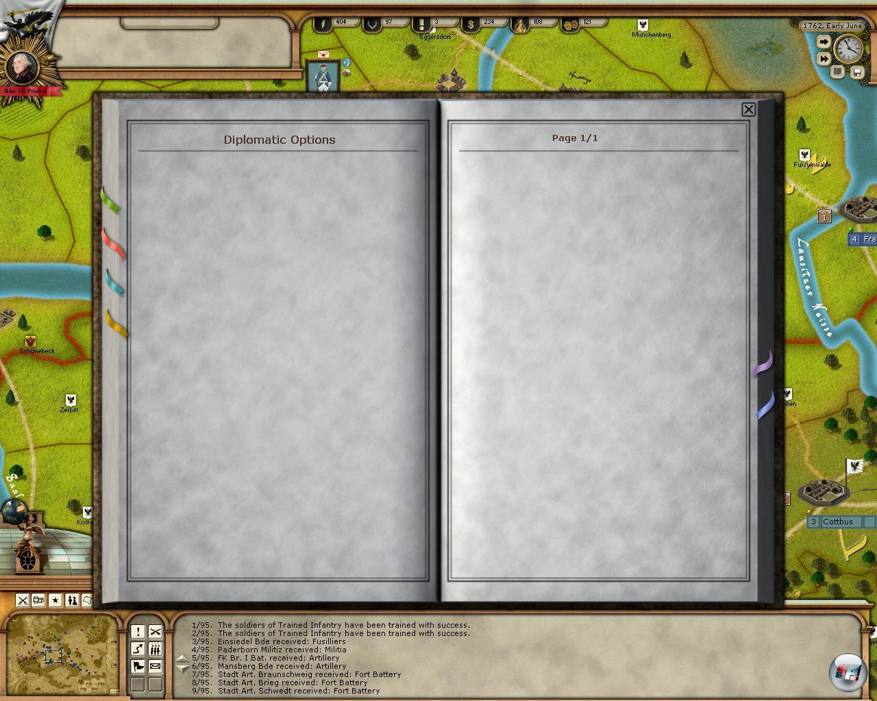 Trotzdem könnte die trockene, aber wichtige Auflistung der Einheiten, Generäle und Ziele besser visualisiert sein, denn hier findet man im Wust manchmal gar nichts mehr. Und das, obwohl Diplomatie nur auf dem Papier besteht, da der Ordner dafür immer leer ist. Auch die Erforschung der Einheiten läuft im Gegensatz zu Hearts of Iron eher spartanisch, da diese nur verbessert werden können. Auch in Sachen Verhandlung, Technik und Bauoptionen könnte das Spiel noch deutlich zulegen. Und der Seekrieg spielt bis auf ein paar Boote auf der Elbe kaum eine Rolle, was aber in Ordnung ist, da weder Preußen noch Österreich große Seemächte waren.