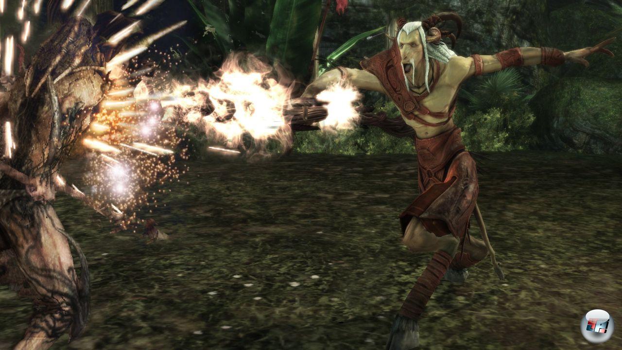 Ja: Ich hätte mir durchaus mehr Auswahlmöglichkeiten gewünscht, da so auch die Kämpfe aufgewertet würden, die zwar hier und da mit gewissen Finessen wie dem Echtzeit-Waffenwechsel samt Sonderkombo aufwarten, aber meist sehr gleichförmig verlaufen. Was mich aber innerhalb der Genre-Grenzen nicht stört, zumal man hier letztlich mehr Möglichkeiten hat, als man es vom handelsüblichen „Klick&Blöd“-Kloppmist auf dem PC kennt. Allerdings muss sich das größtenteils konventionelle, aber mit aktivem Block ausgestattete Kampfsystem Too Human beugen, dem ärgsten Konkurrenten auf Konsolen, der übrigens auch mit einem abgewandelten mythologischen Hintergrund seine Aufwartung macht.