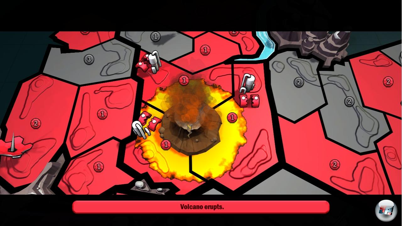 | Im Fraktionsmodus gibt es hingegen auch Karten mit speziellen Feldern und Ereignissen wie diesen Vulkanausbruch. |