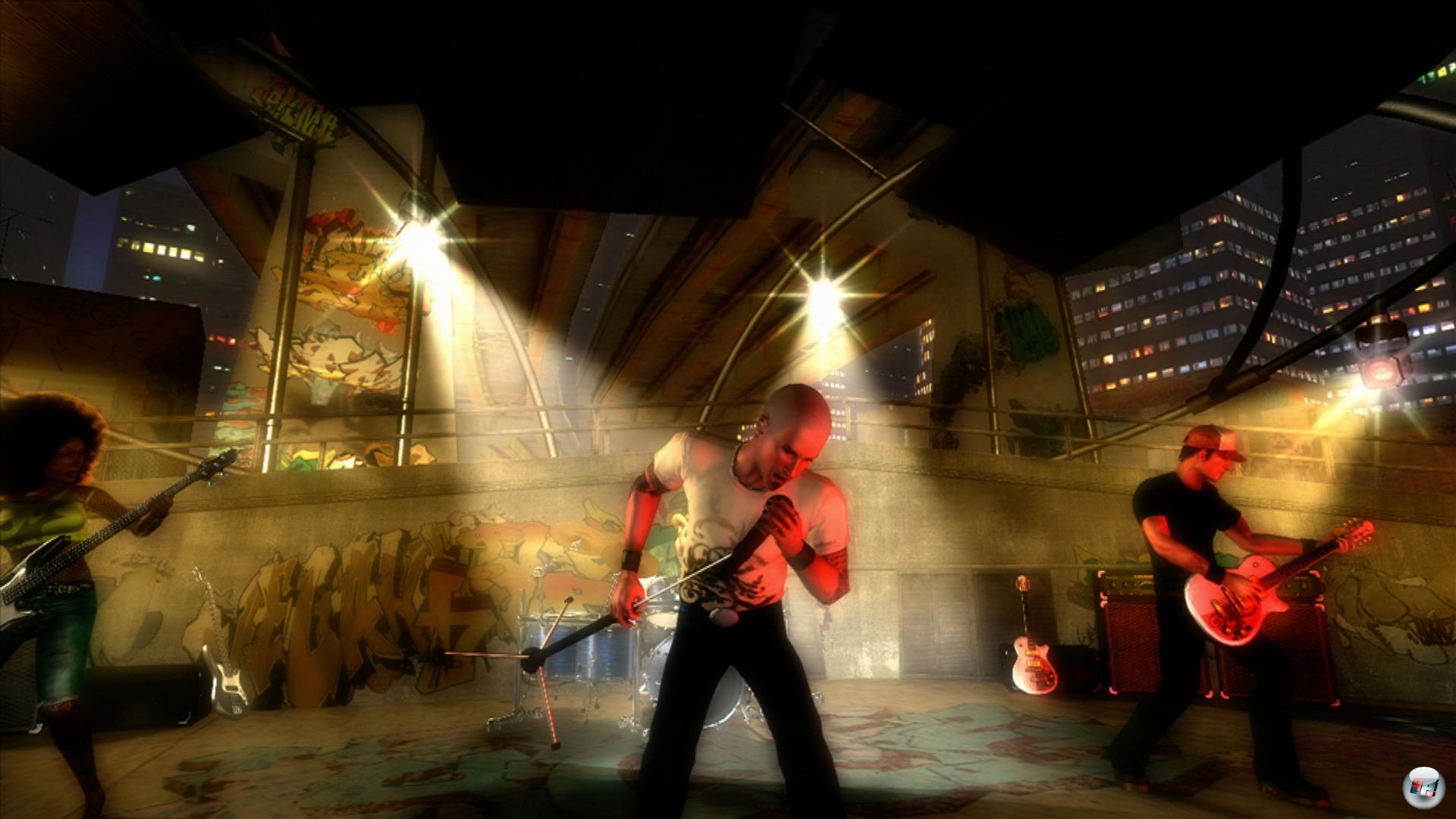 [GUI_FLVPLAYER(width=300,height=188,STREAMINGID=18473,image=http://static.4players.de/premium/ContentImage/50/47/124938-bild.jpg)] Video: Im Gegensatz zu Rock Band & Co bietet Rock Revolution lediglich Cover-Versionen, die überwiegend amateurhaft klingen.