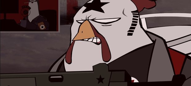 [GUI_PLAYER(ID=103787,width=475,text=Der PS Vita-Launch-Trailer.,align=left)]Das hartgekochte Huhn rollt in den nächsten Raum, knallt mit einem satten Sound die ersten Pinguinschergen über den Haufen und hechtet weiter durch die Comic-Kulisse, zwei Schüsse nach links, einer nach rechts, doch der prallt dumpf an dem Schild der Elite-Einheit ab. Also wegrollen, Schuss in den Rücken. Jetpack umschnallen und wie in einem Zweistick-Shooter ab in die Lüfte. Landen auf dem Zeppelin. Nächster Raum. Immer weiter bis das totalitäre Regime der Pinguine durch die Hand…äähhh….durch den Flügel meines Hühnerhelden gestürzt wird.