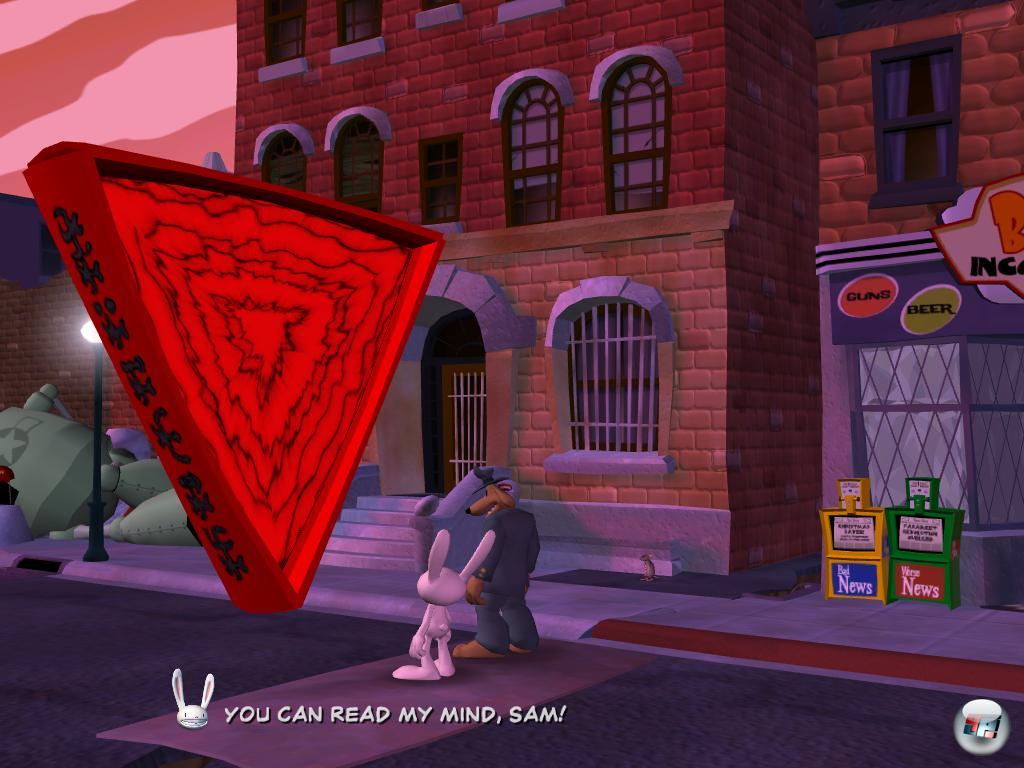 Das ist nicht die letzte Begegnung mit einem bekannten Gesicht, denn auch Stinkys Tochter, Dickschädel Abe Lincoln und Jimmy die Ratte sind wieder mit von der Partie. Natürlich wird es auch langsam mal langweilig, immer dieselben Gesichter zu sehen, aber immerhin ist es wieder mit recht viel Charme gemacht – noch nervt es also nicht. Einer ist gleich besonders wichtig: Bosco. Der kennt sich mit mysteriösen Dingen ja besonders gut aus und als Berufsparanoiker weiß er natürlich, wie man mit einem wildgewordenen Dreieck verfährt, das schon einige Leute, Flugzeuge und Schiffe verschlungen hat. Dieses Mal gibt’s den Tipp sogar umsonst, wofür Sam & Max sonst im Shop eine exorbitant hohe Summe bezahlen mussten.