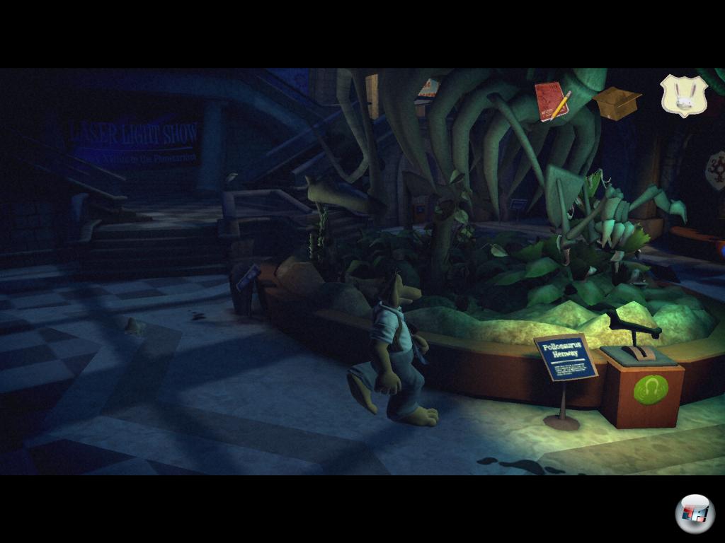 Im weiteren Verlauf muss man natürlich auch wieder auf Max übersinnlichen Fähigkeiten zurückgreifen, denn sonst kommt man nicht weiter. Dieses Mal kann er sich zu Telefonen teleportieren oder sich mittels Rhinoplastik in Objekte verwandeln, was gleich an mehreren Stellen gefragt ist. Obwohl man mal um die Ecke denken muss, sind die meisten der ohnehin wenigen Rätsel zu schnell gelöst. In punkto Puzzles ist die dritte Episode also eher ein Rückschritt, verglichen mit dem, was die letzte Episode an filmreifen Aufgaben bot. Durch Filmrollen zappen muss man dieses Mal genauso wenig wie durch die Zeit hoppen. Die Rätsel sind „normaler“, auch wenn sich die Macher hie und da was einfallen ließen. Auf die Sache mit dem Zeppelin muss man erst mal kommen!