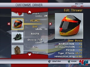 Neben diesen Standardfähigkeiten ist es hauptsächlich eure Ausrüstung, die über Sieg oder Niederlage entscheidet. Die diversen Rennanzüge, Handschuhe, Helme und Stiefel wirken sich auf einzelne Aspekte aus und verstärken z.B. Fähigkeiten oder bescheren euch höhere Erfahrungspunkte. Voraussetzung für das Tragen einer Ausrüstung ist jedoch der jeweilige Erfahrungslevel, den euer Fahrer bereits erreicht haben muss. Habt ihr als Level 8-Fahrer z.B. schon Level 12-Stiefel gewonnen, könnt ihr diese noch nicht tragen. Gerade das Experimentieren mit den verschiedenen Ausrüstungen sorgt auch abseits der Rennstrecke für viel Spaß.