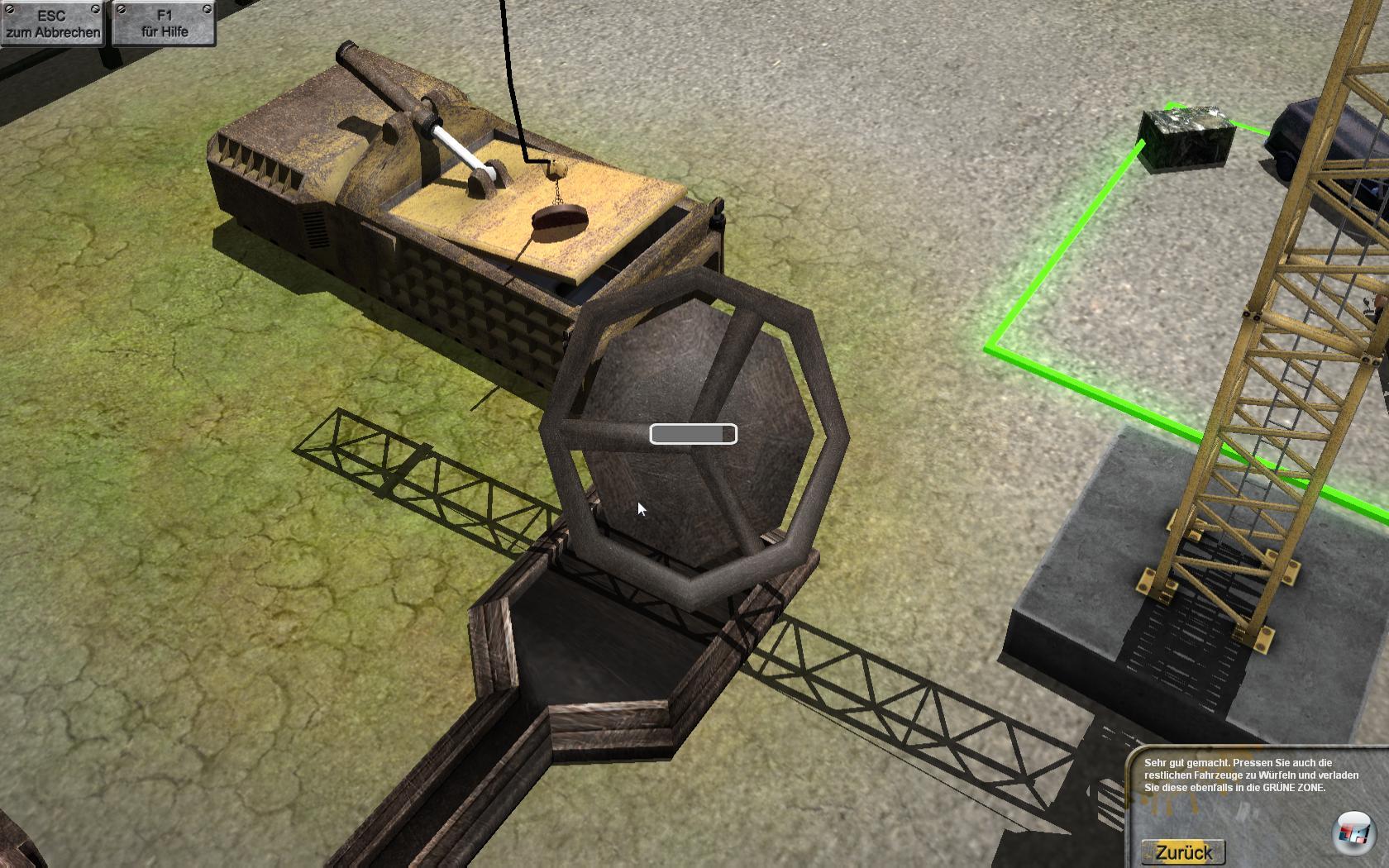 Schon der erste Auftrag lässt keine Zweifel darüber aufkommen, womit ich es auch diesmal wieder zu tun habe: Grässliche Grafik aus der Videospiel-Steinzeit gepaart mit Aufgaben, die in unbezahlte Telearbeit ausarten, mit Spaß aber soviel zu tun haben wie die Ludolf-Brüder mit Take That. Was ist zu tun? Per Kran sollen zunächst Autowracks von einer Ladefläche aufgenommen und zu einer anderen bugsiert werden. Dazu navigiere ich den am Kran befestigten Elektromagneten direkt über das Fahrzeug und aktiviere ihn mittels Druck auf die Leertaste. Nun drehe ich den Kran nach links über die Abladefläche und entlade den Magnet erneut mittels Leertaste, um das Fahrzeug abzuladen. Hört sich schon langweilig an, wenn man es nur liest? Glaubt mir…es ist auch nicht spannender, wenn man es spielt.
