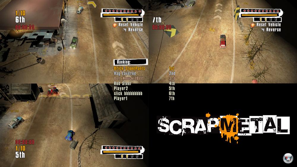 Ich möchte darum bitten, sich kurz zu erheben. Danke schön! Und jetzt dürfen sich alle wieder setzen – bis auf diejenigen, die Sonys Twisted Metal-Serie kennen. Nein, man muss sie nicht zwingend gespielt haben, nur kennen. Und von diesen bleiben bitte alle stehen, die Micro Machines kennen. Hmmm. Und jetzt setzen sich bitte alle, die nichts mit dem Namen Rock’n’Roll Racing anfangen und daher auch nicht den damaligen Entwickler nennen können – richtig: Es war Blizzard, seinerzeit noch unter dem Namen Silicon & Synapse! All diejenigen, die jetzt noch stehen, dürften wie ich mit Scrap Metal glücklich werden, vereint es doch die herausragenden Eigenschaften der drei genannten Titel.