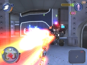 sehr schnell: Roboter kommen nach dem Ableben nicht auf den Schrottplatz oder in einen ölreichen Himmel, sondern warten als stets verfügbare Matrix in der »Großen Datenbank«. Ist die alte Hülle vaporisiert, zerlasert, durchrostet oder sonstwie hinüber, wird einfach die Matrix aus der Datenbank in eine neue Form gebeamt, und schon erstrahlt man wieder in frisch gewienertem Lack – praktisch! Unser Held hat die überaus nützliche Fähigkeit, sich in diese Datenbank hacken und jede beliebige Form annehmen zu können. Das bringt zwar die Polizei auf die Palme, ist aber essentieller Design-Baustein des Games.