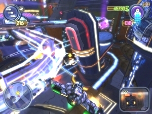 Steht der fliegbare Untersatz, könnt ihr auch schon drauflosjagen: Draußen könnt ihr entweder ein paar ruhige Runden durch die durchgestylte Scrapland-Welt drehen, der Polizei bei der Verbrecherjagd helfen oder euch Luftkämpfe liefern. Jedes Raumschiff hat unterschiedliche Waffen an Bord, vom weit streuenden MG bis zur Laserkanone. Mit manchen Waffen könnt ihr blind drauflosfeuern, andere brauchen erst einen kurzen Augenblick, um sich auf das Ziel einzuschießen. So oder so werdet ihr euch an den Luftkampf gewöhnen müssen: Zwar ist die gegnerische Intelligenz nicht die hellste, was Treffsicherheit oder die Ausweichmanöver angeht. Aber dafür verfügen die Blechköpfe über einen gesunden Selbsterhaltungstrieb, und nehmen die glänzenden Beine in die Hand, sobald die Lebensenergie zur Neige geht.