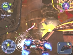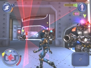 | Als dicker Polizeibot könnt ihr mit Plasmakugeln um euch feuern. |