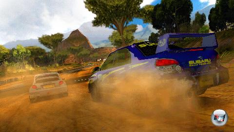 Mit dem kleinen Analognippel der PSP oder dem Digitalkreuz wird nicht ganz das geniale Fahrgefühl der Konsolenfassungen erreicht. Trotzdem driftet ihr auch im Miniformat nach kurzer Eingewöhnung komfortabel um die Kurven und ihr genießt es zu sehen, wie der Lack eurer Karre zunehmend verschmutzt. Störend ist allerdings die Kollisionsabfrage: Die Boliden fühlen sich viel zu leicht an und wirbeln nach Kollisionen oft wie Spielzeugautos durch die Gegend. Und solch unliebsame Kontakte gibt es vor allem in höheren Stufen reichlich, denn die KI ist extrem stur und hat kein Problem damit, euch von der Strecke in die nächste Wand zu rammen. Ärgerlich ist in diesem Zusammenhang, dass sich die Fahrzeuge auch oft ineinander verkeilen, wenn sie Rad an Rad fahren. Als Folge dessen bremsen sich die beiden Streithähne gegenseitig aus, während