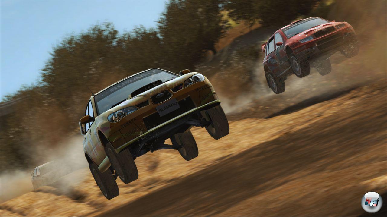 Bei all der Pracht, die Sega Rally auf den ersten Blick auf den Bildschirm zaubert, fallen bei genauem Hinsehen aber doch ein paar Schönheitsfehler auf: Die Pop-Ups und Fade-Ins am Streckenrand sind teilweise grausig und auch der Weichzeichner, bei dem Furchen oder Bremsspuren plötzlich detailreicher dargestellt werden, fällt negativ auf. Dazu gesellen sich vereinzelte VSync-Probleme, unter denen die PS3-Version allerdings etwas mehr leidet als das 360-Pendant. Trotz der Kritik kann sich Segas Schlammschlacht sehen lassen, denn die Kulissen wurden nicht nur ansehnlich und abwechslungsreich designt, sondern glänzen auch mit einer flüssigen Darstellung, die zwar nur 30 Bilder pro Sekunde erreicht, aber dennoch für ein tolles Geschwindigkeitsgefühl sorgt. Dafür mussten die Details im Rückspiegel merklich Federn lassen: Ihr seht weder die Reifenspuren im Dreck noch irgendwelchen aufgewirbelten Dreck. Zumindest könnt ihr eure Verfolger aber gut genug im Auge behalten. Die Ohren werden vor allem in den beiden Außenansichten mit knackigen Motorenklängen verwöhnt. Eher durchschnittlich kommt der Elektro-Soundtrack daher, der die Rennen mit belanglosen Melodien im Hintergrund begleitet. Zumindest sind die Stücke aber nicht so übel wie der Japan-Elektro-Rock-Pop, der in den Vorgängern aus den Lautsprechern düdelte. Zumindest fühlt man sich nicht dazu gezwungen, die Musik abzustellen, wenn man seine Runden dreht. Rennen von Punkt A nach Punkt B, wie es in Sega Rally 2 der Fall war, werdet ihr hier übrigens nicht finden. Stattdessen geht es immer nur auf Rundkursen zur Sache.