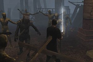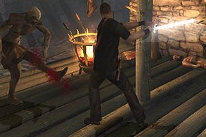 Gesteuert wird der unbekannte Rächer aus der 3rd-Person-Perspektive und in eben dieser Ansicht laufen alle Kämpfe ab – vergleichbar mit Enclave oder Knights of the Temple. Mit einer Maustaste wird zugeschlagen, mit der Anderen geblockt und später kommen Kombos hinzu. Das hört sich eigentlich ganz simpel an, aber im Spiel erfordern die Kämpfe Fingerspritzengefühl und gutes Timing, um die Gratwanderung zwischen dem Blocken und der Attacke zu meistern – besonders bei vielen Gegnern. Manche erledigte Feinde hinterlassen sogar neue Schießprügel, die ihr natürlich aufnehmen könnt. Insgesamt kommen so rund 25 verschiedene Waffen (magisches Schwert, Armbrust, Pistole) ins Spiel. Aber Vorsicht: Nicht jede Waffe hilft gegen jeden Gegner – so ist eine Pistole beispielsweise nur effektiv gegen fleischliche Widersacher; mehr Komplexität bieten die Kämpfe nicht.