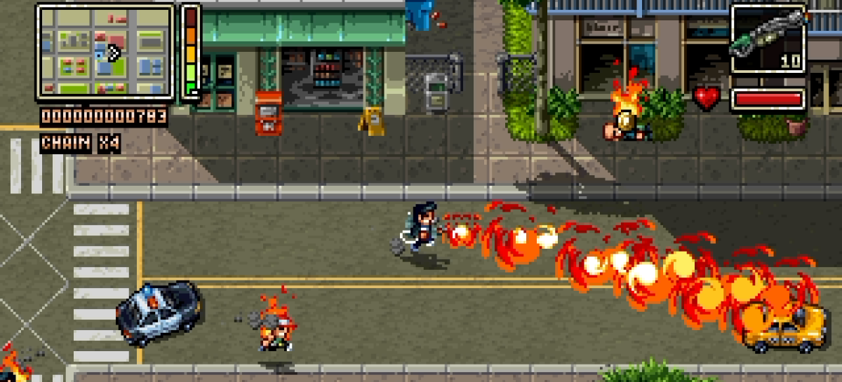 Auf dem Papier könnte dies die Basis für eine trockene Wirtschafts- bzw. Aufbaustrategie à la Transport Tycoon, Pizza Connection & Co sein. Doch Vblank Entertainment nutzt dieses Szenario als Basis für eine mechanisch gleichermaßen konsequente wie stringente Fortsetzung von Retro City Rampage. Wir erinnern uns: Die Action in offener 8-Bit-Pixel-Welt orientierte sich mit ihrer 2D-Vogelperspektive am Ur-Grand-Theft-Auto und reicherte dies mit kurzweiligen Missionen, teils absurden Minispielen sowie einer witzigen Zeitreise-Geschichte an, die sich vor allem die Pop-Kultur als Ziel ihrer Gags ausgesucht hatte.