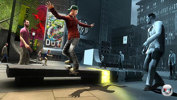 Der danach folgende Editor ist angesichts der Fortschritte, die gerade dieser Bereich in der Videospielewelt in den letzten Jahren gemacht hat, erschreckend rudimentär: Männlein und Weiblein stehen zur Wahl, ebenso eine Hand voll Frisuren, ein paar Klamotten sowie wenige Personalisierungen für das Board. Weiteren Kram spielt man im Laufe der knapp zehn Stunden langen Karriere frei, es bleibt trotzdem ein sehr oberflächliches Vergnügen. Ganz besonders angesichts der Tatsache, dass das Alter Skato keinen Namen trägt und im ganzen Spiel nicht ein Mal zu Wort kommt. Ganz im Gegensatz zu Jonah, dem Anzugträger, der dem namenlosen Rollhelden alle wichtigen Tricks beibringt – und dabei so aussieht, als wäre er ein Ministeriumsagent.
