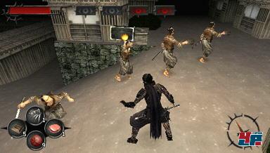 Das klingt ja alles prima, aber warum steht im Wertungskasten nur eine mickrige 69? Wie so häufig bei PSP-Umsetzungen gibt es auch bei Shinobido technische Probleme. Die gewöhnungsbedürftige Steuerung ist noch das kleinere Übel. Nach einer gewissen Eingewöhnungszeit kam ich verhältnismäßig gut mit ihr zurecht. Aber kombiniert mit der nervösen Kamera seid ihr euren Feinden oftmals hilflos ausgeliefert. Besonders in hektischen Momenten und in schmalen Gängen schaltet die Sicht plötzlich in die Egoperspektive und zurück, dreht sich wild im Kreis und macht alles, nur eines nicht: Das Bild so einfangen, dass man den Überblick behält. Und das, was ihr bei ruhiger Kamera zu sehen bekommt, reißt nicht gerade zu Begeisterungsstürmen hin. Die karge Hintergrundgrafik mit ihren grobschlächtigen Texturen erinnert sofort an seelige PSone-Zeiten. Und das, obwohl ihr immer nachts unterwegs seid und deshalb nicht all zu weit sehen könnt. Dazu kommt, dass viele Abschnitte so aussehen, als seien sie mit einem einfachen Editor gebastelt worden. Dieser Eindruck kommt nicht von ungefähr, denn der PS2-Version lag ein solcher Baukasten bei, in dem der Spieler seine eigenen Umgebungen zusammensetzen konnte. In der PSP-Version fehlt der Editor, dafür lassen sich aber auf der PS2 erstellte Levels auf den PSP herunterladen. Als kleine Entschädigung für die fade Kulisse sind die Charaktere ein wenig detaillierter gestaltet und einigermaßen realistisch animiert.