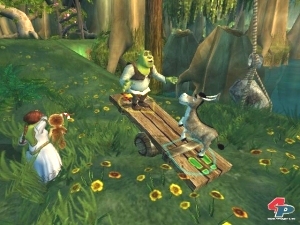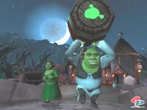 | Jeder Charakter hat spezielle Eigenschaften; Shrek kann beispielsweise Dinge mit sich herumtragen. |