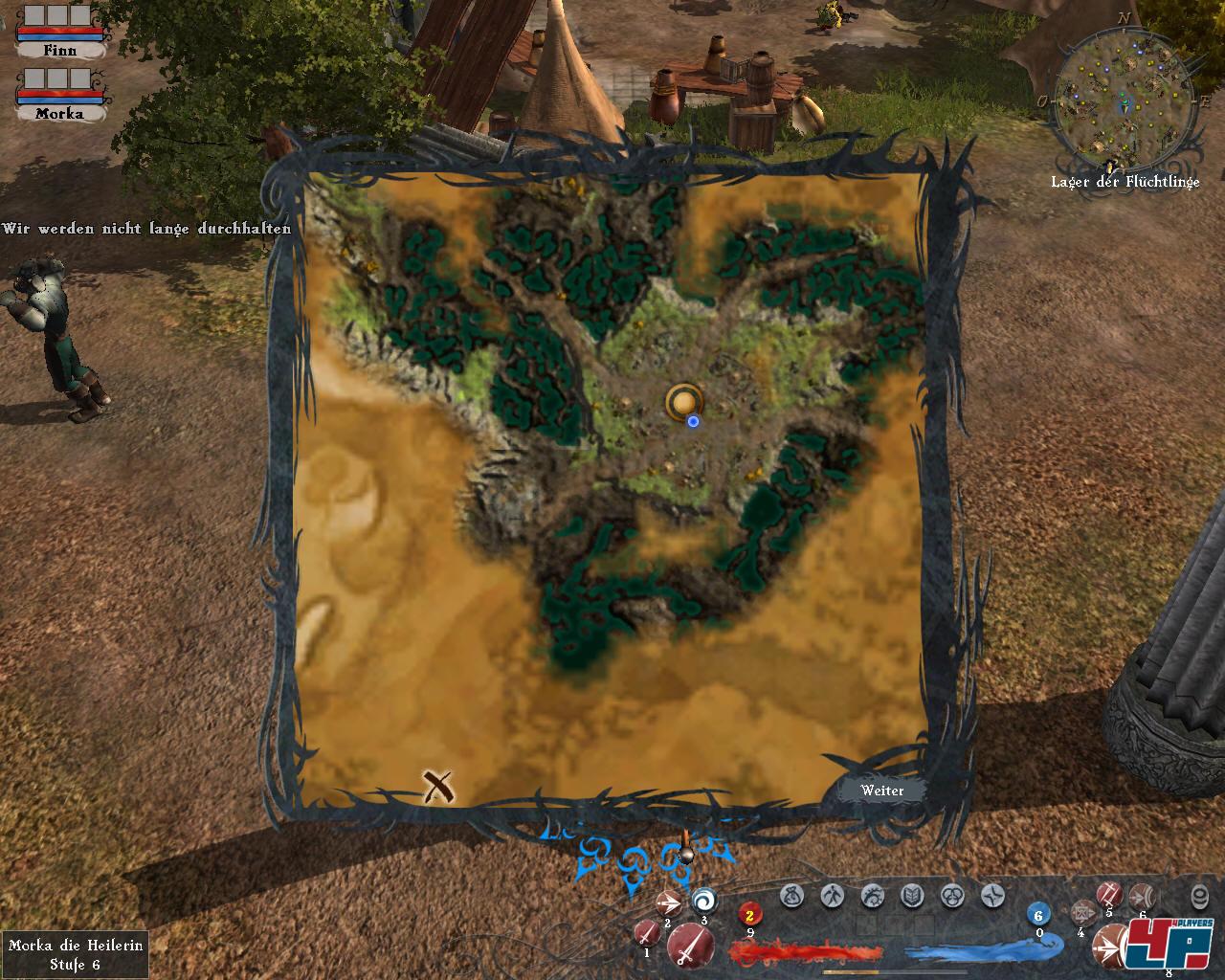| Die Übersichtskarte wird dynamisch mit euren Erkundungen aufgedeckt – und in Dungeons durch ein großes „Nichts“ ersetzt – Orientierung Glückssache! |