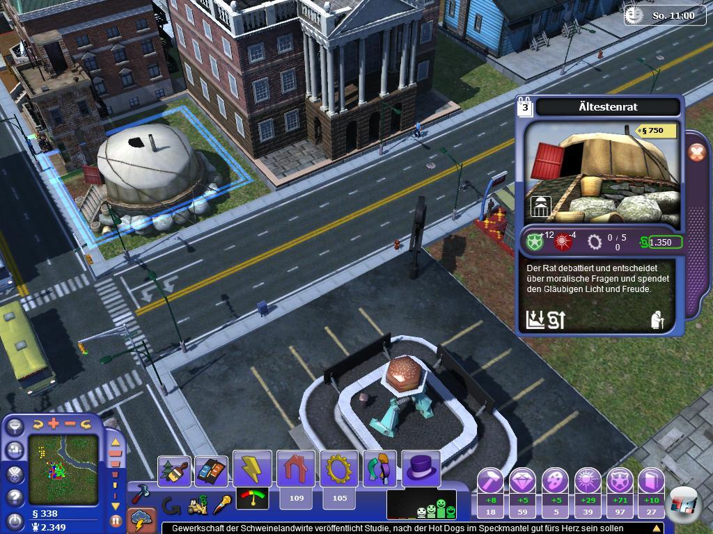 Ganz konsequent ist das alles nicht, denn Klöster erzeugen Glauben, während Kirchen ihn verbrauchen. Wo soll da denn der Unterschied sein? Andererseits sorgen die wiederum für gute Stimmung. Wer will, kann auch gleich ein Sektenzentrum errichten, das auch Ordnung erzeugt. Auch die Wohnhäuser werden anders als früher bei SimCity fertig hingestellt und entwickeln sich nicht von alleine. So lässt sich einerseits besser planen, wie viele und welche Häuser ihr bauen wollt, von denen es Containerparks, Slums, Einfamilienhäuser Wohnblocks und Villen gibt. Aber die Dynamik einer Stadtentwicklung mit ihrem Auf und Ab geht vollständig flöten, da alles bleibt, wie es einmal hingestellt wurde.