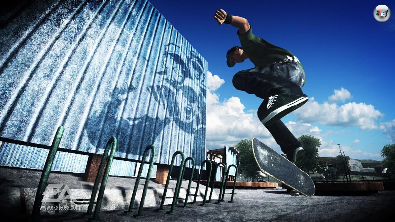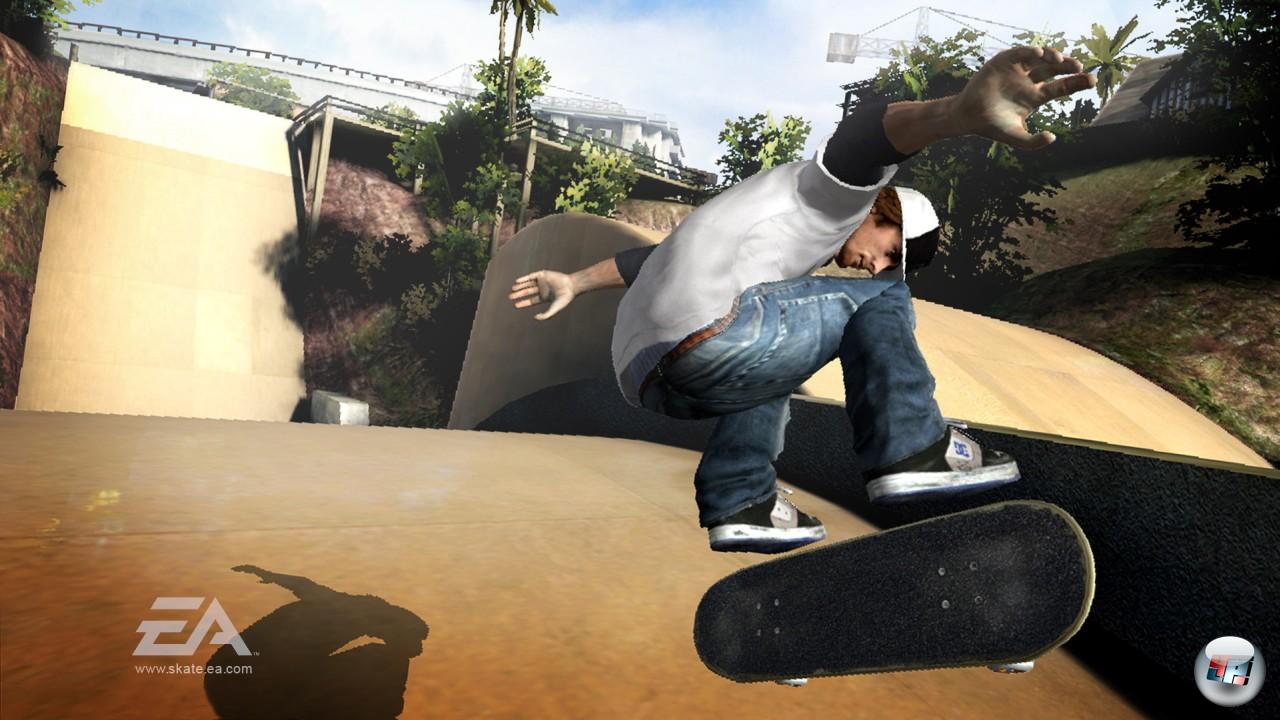 Bei skate ist der Name Programm: Hier geht es um das reine Skaten, die Beherrschung des Boards, und nicht darum, möglichst 10.000 Tricks in eine lange Kombo zu packen. Das Board ist wichtiger als der Skater, das sieht man schon daran, dass die Kameraperspektive recht tief liegt und damit das Brett statt den Brettbediener in den Mittelpunkt rückt. Und wie auf dem echten Board ist auch hier die Kontrolle alles andere als intuitiv: EAs brandneues »Flickit«-System ermöglicht eine völlig andere Kontrolle des Skateboards, erfordert allerdings viel Geduld und Gewöhnung seitens des Spielers – anfangs macht man alles, nur nicht die Tricks, die man eigentlich beabsichtigt hat. Kein Wunder, dass das (auch überspringbare) Tutorial so umfangreich geraten ist…