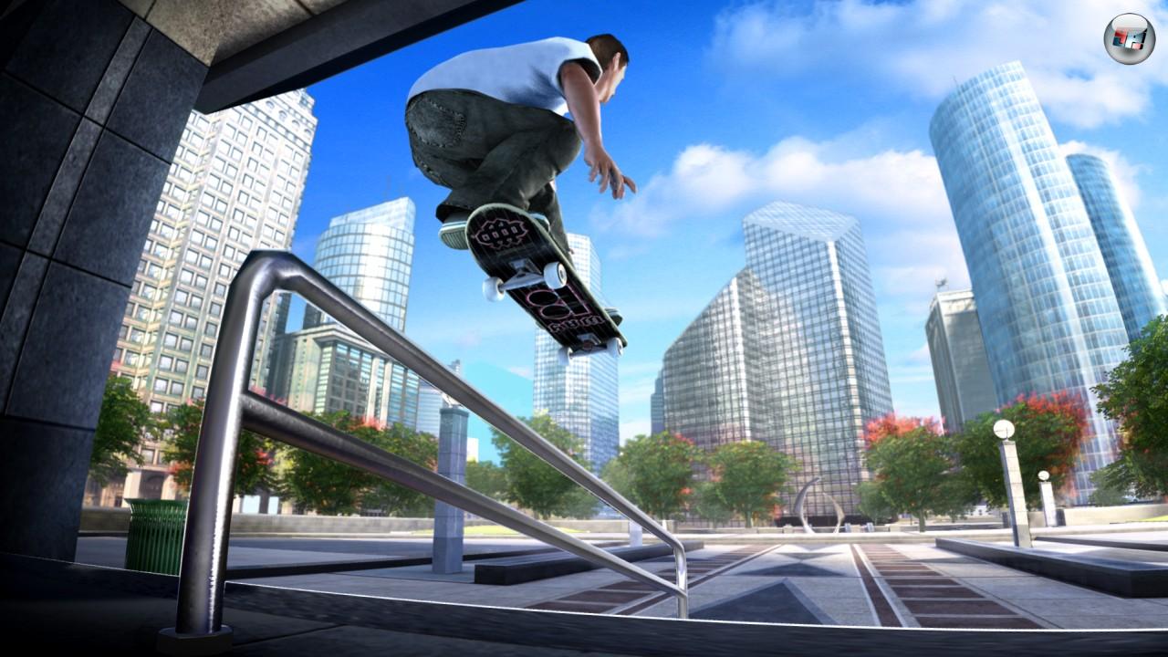 Technisch besticht skate vor allem durch die exzellenten Animationen seiner rollenden Helden: Die Bewegungen sind flüssig, glaubwürdig, stylisch. Der Rest ist nicht übel, aber auch nicht spektakulär: Die Stadt sieht gut aus, die Figuren wirken in Nahaufnahme wie von etwas dickeren Pixeln gezeichnet – das verleiht dem Ganzen einen interessanten, dezenten Comiclook. Wichtig ist vor allem, dass die Geschwindigkeit stimmt, zumindest auf der 360 gibt’s kein Ruckeln weit und breit – auf der PS3 schleicht sich gelegentlich ein spürbares Zuckeln ins Bild, das dem Skatespaß aber keinen Abbruch tut. Ärgerlicher sind da s chon die bereits erwähnten langen Ladezeiten, zumal sie oft genug nur schwer verständlich sind: Schafft man eine Herausforderung nicht beim ersten Mal, muss man sich erst umständlich durch einige Menüs hangeln, dann wird kurz geladen, und erst danach darf man erst nochmal probieren. Macht man das ein Mal, ist es kein
