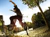 Steht der Skater, wartet auch schon der Glanz und die Glorie des neuen San Vanelona. Einiges ist neu in Skateland und nicht alles davon ist gut. Fangen wir mal mit den positiven Erweiterungen an: Die im Erstling schmerzlich vermissten Liptricks und Handplants sind mittlerweile möglich und auch sehr einfach auszuführen. Falls ihr keine Lust darauf habt, euch persönlich mit dem Weg zum Ziel herumzuschlagen, könnt ihr neuerdings auch zum »Skitchen« greifen – also euch an vorbeifahrenden Autos festhalten und mitzerren lassen. Wem das immer noch nicht schnell genug geht, der kann auch einfach im Pausenmenü das Ziel der Wahl anklicken und sich direkt hinbeamen lassen – die U-Bahn des ersten Teils gehört der Vergangenheit an.