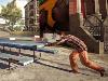 Kommen wir zu den Verschlimmbesserungen: Wie schon anno Tony Hawk’s Underground <a class="DYNLINK" onmouseover="DynToolTipp_Show('Klicken für Gameinfos‚)“ onmouseout=“DynToolTipp_Hide(); “ href=“javascript:DynCont_Display(‚Gamefinder‘,’runmod.php?sid=%7BSID%7D&LAYOUT=dyncont_gf&spielid=4530′)“> könnt ihr euch per Knopfdruck vom Skateboard schwingen und zu Fuß weiterlaufen. Das hat schon seinen Sinn: War das Erklimmen einer Treppe in skate <a class="DYNLINK" onmouseover="DynToolTipp_Show('Klicken für Gameinfos‚)“ onmouseout=“DynToolTipp_Hide(); “ href=“javascript:DynCont_Display(‚Gamefinder‘,’runmod.php?sid=%7BSID%7D&LAYOUT=dyncont_gf&spielid=10622′)“> eine Unmöglichkeit, die immer mit umständlichen Umwegen einher kam, springt man jetzt einfach vom Brett und läuft die Stufen hoch. Aber dass die sonst so grandiose Steuerung völlig versagt, sobald man seine Beine auf die Muttererde setzt, kann einen in den Wahnsinn treiben: Dass man die Kamera nicht frei um den Skater bewegen kann, mag lästig sein, ist aber noch verschmerzbar. Viel nervender ist, dass der Rollenheld nur flüssig geradeaus laufen kann – ein Richtungswechsel, und sei er auch noch so klein, geht immer mit einem kurzen Zucken einher – furchtbar! Besonders lästig wird dieses Feature in Kombination mit der anderen Neuerung: Ihr könnt jetzt, auch das hat Gevatter Hawk bereits vorgemacht, Objekte verschieben und damit theoretisch eigene Skate-Spots schaffen. Theoretisch deshalb, weil zum einen dieses Feature in der Karriere nur aller Jubeljahre mal gebraucht wird. Und zum anderen, weil die Objekte nur sehr fummelig zu