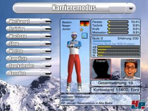 Der Schwierigkeitsgrad, von dem es drei gibt, bestimmt, mit wie viel Geld ihr beginnt und wie viele Torfehler ihr pro Rennen machen dürft. Erste noch bescheidene Ligaerfolge stellen sich recht schnell ein. Für noch mehr Motivation sorgt, dass ihr gewonnene Preisgelder dazu verwenden könnt, euch bessere Ausrüstung zuzulegen. Da richtig tolle Ski an die 20.000 Euro kosten, ist auch für dauerhaften Ansporn gesorgt. Eine Rangliste, in der ihr möglichst weit sein möchtet, steigert das nur noch.