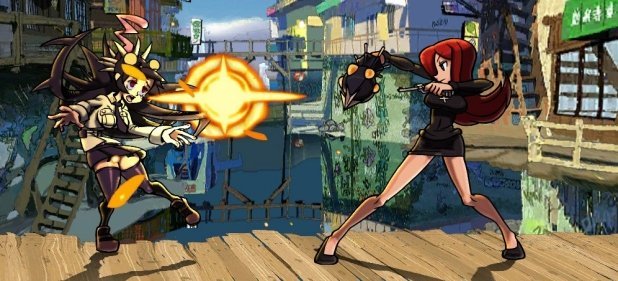 [GUI_PLAYER(ID=88302,width=,text=Acht Mädels verbeulen sich ordentlich die wohlproportionierten Körper – Skullgirls mag simpel aussehen, birgt aber ein sehr anspruchsvolles Kampfsystem.,align=left)]Der Impuls fällt sehr leicht, aber man sollte Skullgirls (SG) nicht nach dem ersten Blick auf eine belanglose Moe-Klopperei reduzieren: Ja, die acht Kämpferinnen sind sehr überzogen dargestellt – mit langen Beinen, knappen Kleidchen und bis unter die Nasen quellenden Brüsten. Aber unter dieser leichten Hülle verbirgt sich ein beeindruckend anspruchsvolles Beat-em-Up.