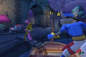 Auch Sly hat vor allem beim Schleichen neue Möglichkeiten: Er kann von hinten an einen Feind herantapsen, um ihn mit einer tödlichen Zweierkombo direkt ins Jenseits zu befördern – herrlich animiert durch eine Attacke samt Judo-Wurf. Außerdem kann er sich jetzt als Langfinger austoben: Sobald er hinter einer arglosen Wache steht, kann er mit seinem Sichelstab zugreifen – neben einfachen Goldmünzen können sich auch wertvolle Gegenstände wie Ringe oder Rubine darin befinden.