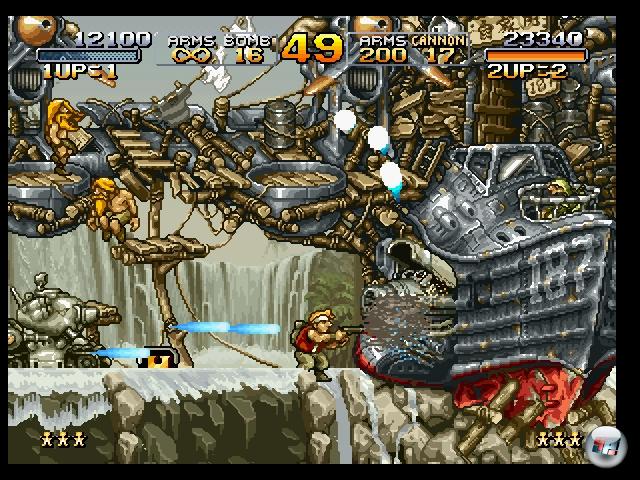 Das ist allerdings angesichts der PSP-Version ein nichtiges Problem: Hier beginnen die Gemeinheiten mit den Ladezeiten. Die sind ja generell ein PSP-Problem, und es gibt zugegebenermaßen schlimmere Kandidaten für die Handheld-Warteliste. Dass allerdings zwischen dem Starten der UMD und dem endlich auftauchenden Hauptmenü fast zwei Minuten vergehen, ist für eine Sammlung von 2D-Spielen einfach nicht akzeptabel! Die Prügler steuern sich mit dem schwammigen Digipad wenig präzise, außerdem kommt hier noch das Problem hinzu, das bereits die Metal Slug Anthology plagte: Ruckeln. Teilweise (wie bei Shock Troopers) ist es schon im Einzelspielermodus deutlich spürbar, bei den Multiplayerausflügen gehen die Frames teilweise in den einstelligen Bereich. Dass ihr die Grafik in drei Optionen (Originalgröße, 4:3 Fullscreen, 16:9 Fullscreen) verstellen könnt, hilft da leider auch nichts.